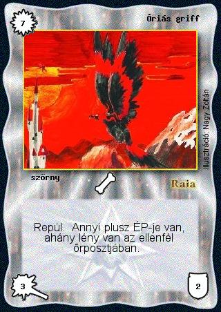 (AK2) Az Óriás griff ÉP-jét a vele szemben álló lények növelik. Tegyük fel, hogy ezek a lények a harc során (miközben az Óriás griffet sebzik) elpusztulnak. Ebben a speciális esetben kivételt kell tennünk a szabályokhoz képest - az Óriás griff a harc során először az ellenfél őrposztjában levő lényektől kapott ÉP-t veszti el, és csak ezután a sajátját -, mert ellenkező esetben az Óriás griff speciális képessége teljesen értelmetlen lenne.