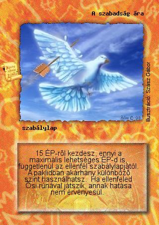 Kiadás: Ezüsthajnal Gyakoriság: ultra ritka Lapszín (isten): Nincs Típus: szabálylap Szöveg: 15 ÉP-ről kezdesz, ennyi a maximális lehetséges ÉP-d is, függetlenül az ellenfél szabálylapjától. A paklidban akárhány különböző színt használhatsz. Ha ellenfeled Ősi rúnával játszik, annak hatása nem érvényesül. Illusztráció: Szász Gábor
