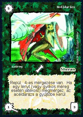 Szöveg: Repül. 4-es mérgezése van. Ha egy lényt (vagy gyilkos méreg esetén játékost) megmérgez, az acéldarázs a gyűjtőbe kerül.