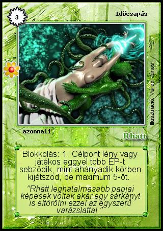 Kiadás: Rhatt fénykora Gyakoriság: ritka Lapszín (isten): Rhatt Típus: azonnali Szöveg: Blokkolás: 1. Célpont lény vagy játékos eggyel több ÉP-t sebződik, mint ahányadik körben kijátszod, de maximum 5-öt. Szinesítő szöveg: "Rhatt leghatalmasabb papjai képesek voltak akár egy sárkányt is eltörölni ezzel az egyszerű varázslattal." Illusztráció: Váradi János