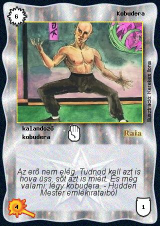 Kiadás: Alappakli, 1. kiadás, Alappakli, 2. kiadás, Alappakli, 3. kiadás, Alappakli, 4. kiadás Gyakoriság: gyakori Lapszín (isten): Raia Típus: kalandozó Altípus: kobudera Szinesítő szöveg: Az erő nem elég. Tudnod kell azt is hova üss, sőt azt is miért. És még valami: légy kobudera. - Hudden Mester emlékirataiból Illusztráció: Kerekes Ilona