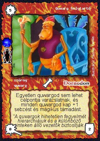 Szöveg: Egyetlen quwargod sem lehet célpontja varázslatnak, és minden quwargod kap +1 sebzést és mágikus támadást.