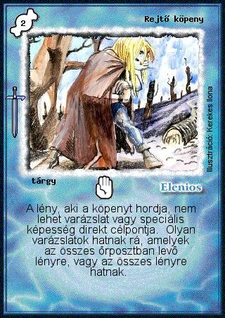 Kiadás: Hőskorszak Gyakoriság: nem gyakori Lapszín (isten): Elenios Típus: tárgy Szöveg: A lény, aki a köpenyt hordja, nem lehet varázslat vagy speciális képesség direkt célpontja. Olyan varázslatok hatnak rá, amelyek az összes őrposztban levő lényre, vagy az összes lényre hatnak. Illusztráció: Kerekes Ilona