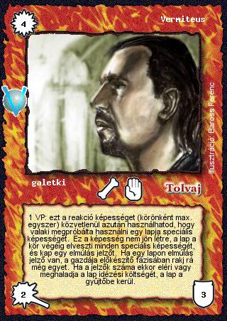 Kiadás: Legendák Völgye Gyakoriság: nem gyakori Lapszín (isten): Tolvaj Klán Típus: galetki Szöveg: 1 VP: ezt a reakció képességet (körönként max. egyszer) közvetlenül azután használhatod, hogy valaki megpróbálta használni egy lapja speciális képességét. Ez a képesség nem jön létre, a lap a kör végéig elveszti minden speciális képességét, és kap egy elmúlás jelzőt. Ha egy lapon elmúlás jelző van, a gazdája előkészítő fázisában rakj rá még egyet. Ha a jelzők száma ekkor eléri vagy meghaladja a lap idézési költségét, a lap a gyűjtőbe kerül. Illusztráció: Baross Ferenc
