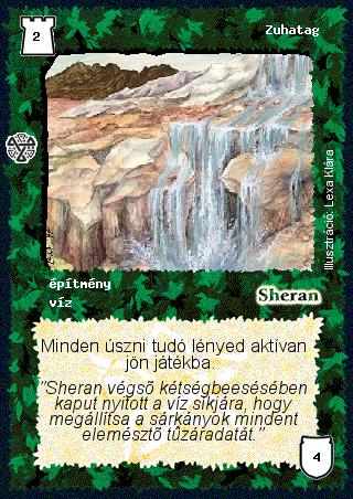 Kiadás: Isteni szövetség Gyakoriság: gyakori Lapszín (isten): Sheran Típus: építmény Altípus: víz Szöveg: Minden úszni tudó lényed aktívan jön játékba. Szinesítő szöveg: "Sheran végső kétségbeesésében kaput nyitott a víz síkjára, hogy megállítsa a sárkányok mindent elemésztő tűzáradatát." Illusztráció: Lexa Klára