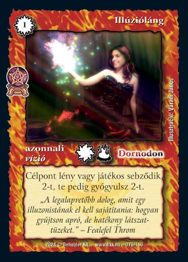 Szinesítő szöveg: "A legalapvetőbb dolog, amit egy illuzonistának el kell sajátítania: hogyan gyújtson apró, de hatékony látszat-tüzeket." - Fealefel Throm
