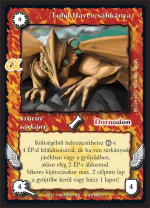 Szöveg: Költségéből helyettesíthetsz 2_VP-t 4 ÉP-d feláldozásával, de ha van sárkányod játékban vagy a gyűjtődben, akkor elég 2 ÉP-t áldoznod. Sikeres kijátszásakor max. 2 célpont lap a gyűjtőbe kerül vagy húzz 1 lapot!