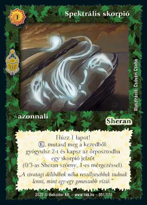 Szöveg: Húzz 1 lapot! (E), mutasd meg a kezedből: gyógyulsz 2-t és kapsz az őrposztodba egy skorpió jelzőt (0/3-as Sheran szörny, 1-es mérgezéssel).