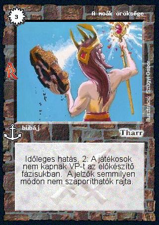 Kiadás: Alanori Krónika Gyakoriság: ritka Lapszín (isten): Tharr Típus: bűbáj Szöveg: Időleges hatás, 2: A játékosok nem kapnak VP-t az előkészítő fázisukban. A jelzők semmilyen módon nem szaporíthatók rajta. Illusztráció: